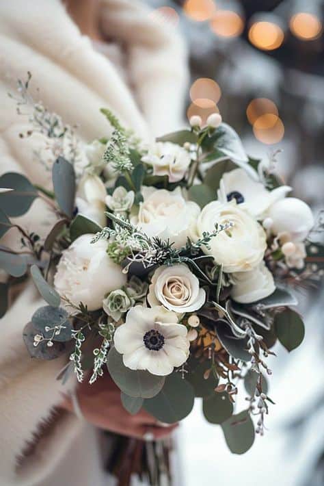 Juniper Lace captures airy winter elegance with its soft ivory tones, delicate botanicals, and gentle juniper fragrance. With its light textures and timeless aesthetic, this bouquet is a thoughtful choice for sympathy, anniversaries, or meaningful sentiments that need a tender, graceful touch.